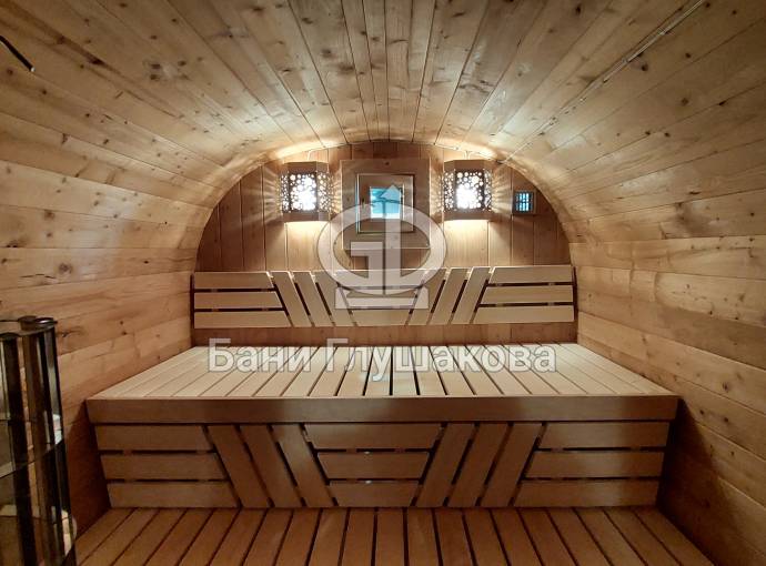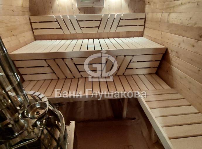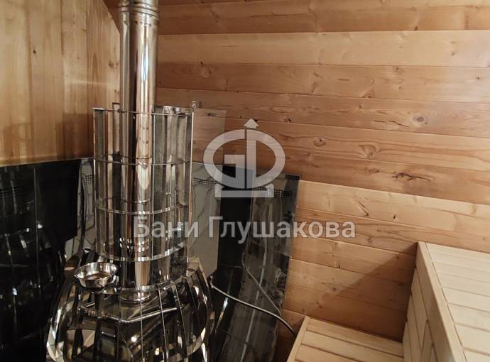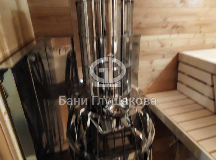 В стоимость уже входит сборка, печь «ГИД 4» нашего производства с парогенератором, электрика, металлические уличные светильники, ступеньки. Вокруг печи стоит металлический экран.