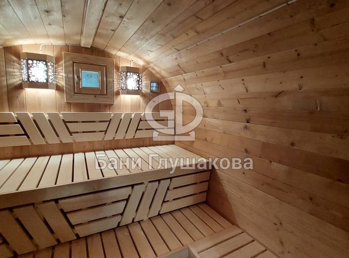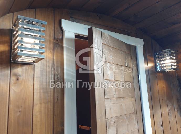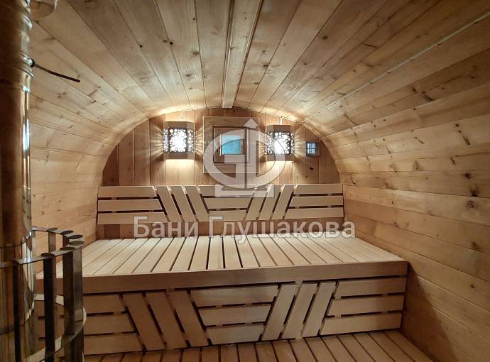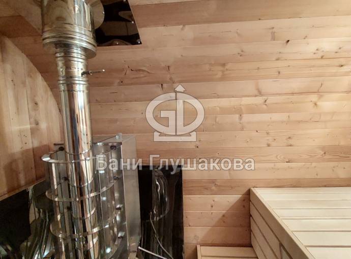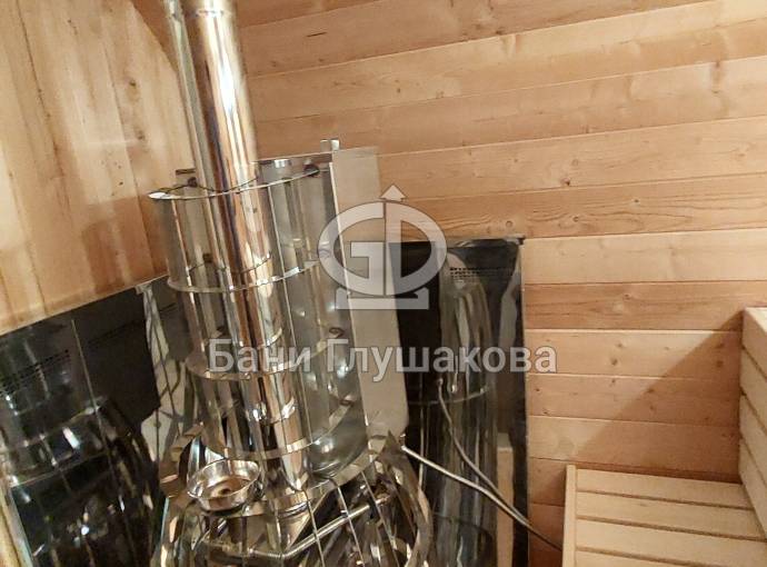 В стоимость уже входит сборка, печь «ГИД 4» нашего производства с парогенератором, электрика, металлические уличные светильники, ступеньки. Вокруг печи стоит металлический экран.