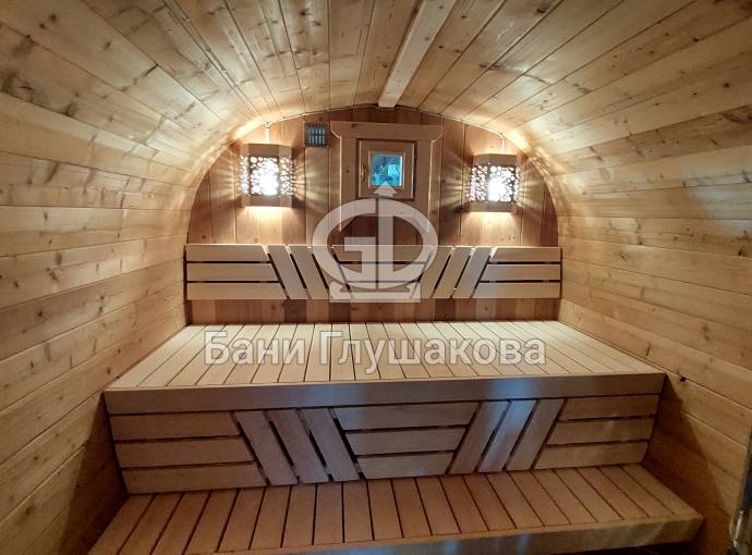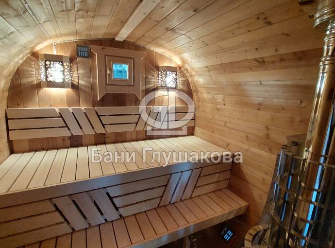 В стоимость уже входят печь «ГИД 4» нашего производства с парогенератором, электрика, металлические уличные светильники, ступеньки. Вокруг печи стоит металлический экран.