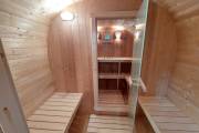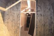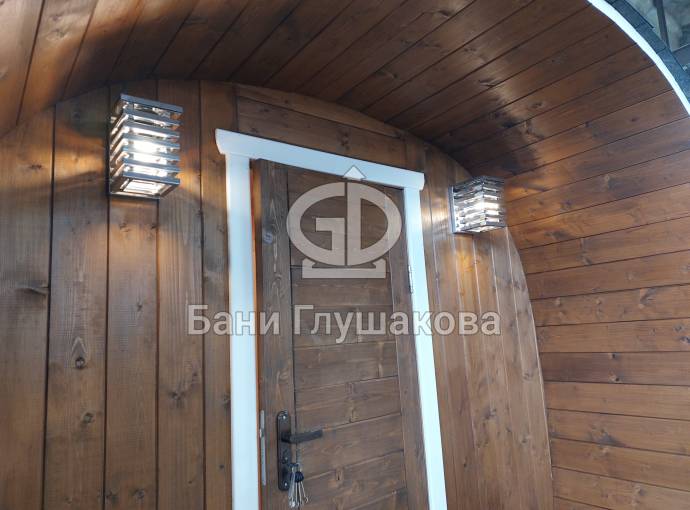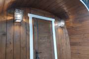 Можно установить один или более светильник у входной двери бани бочки снаружи, подробнее по ссылке, в комплект входит покраска его в цвет окантовки бани, подключение на отдельный выключатель, светодиодная лампа. Стоимость 1700 рублей за штуку