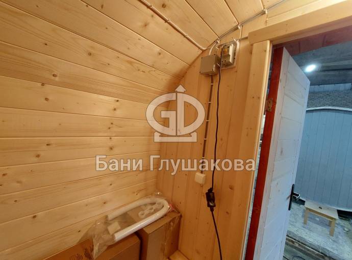 Входит в стоимость. Включает светильники в каждом помещении, вводный автомат, негорючий провод в парную, розетка в комнате отдыха (в банях-бочках розетка устанавливается по требованию).