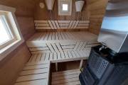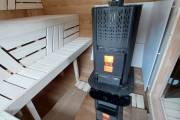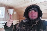 Сейчас мы проводим тестирование этой бани: топим её и проверяем, насколько сильно такой копчёный запах влияет на самоощущение в этой баньке. Он довольно сильный, но не неприятный — просто необычный. Пахнет скорее даже горьким шоколадом.