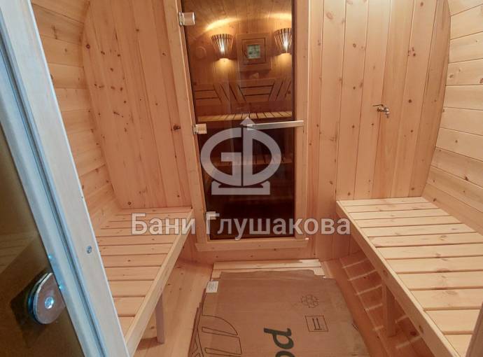 Внешний диаметр бани бочки 2.1м, внутренний размер 2.02м