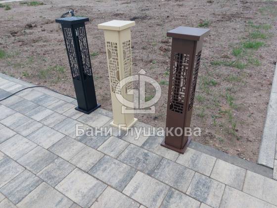 Авторская серия уличных фонарей для ландшафтного освещения «Факел» доступная в трёх разных размерах. Благодаря этому можно организовать подсветку тротуарных дорожек, террасы, пирса, забора и пр.