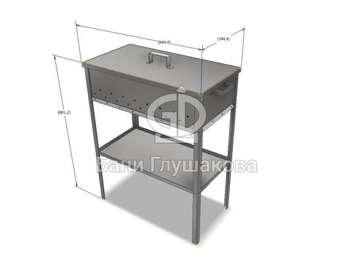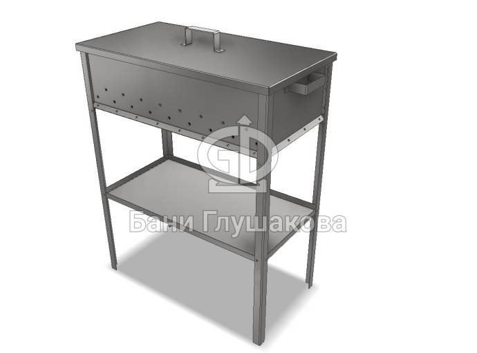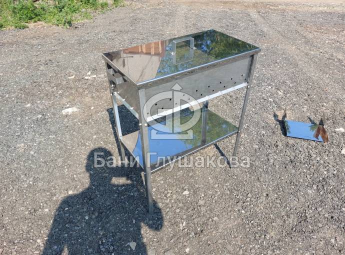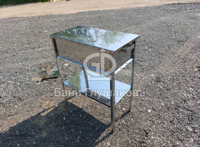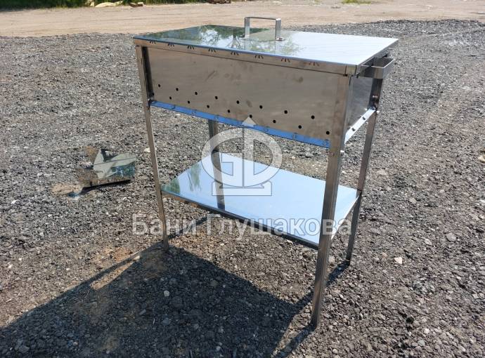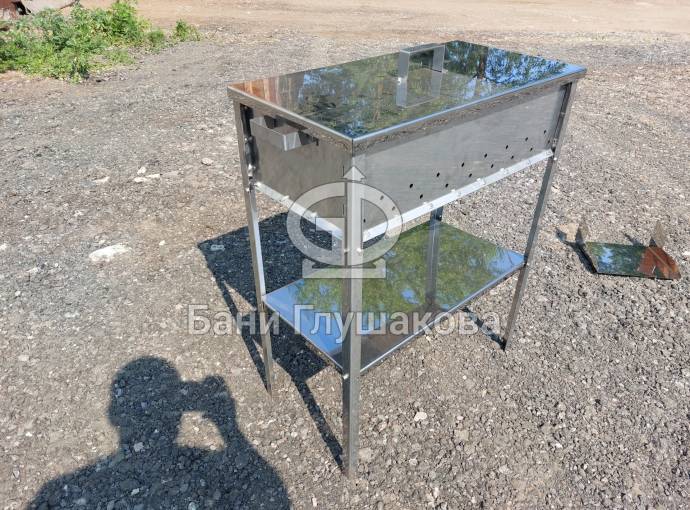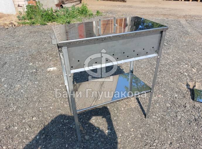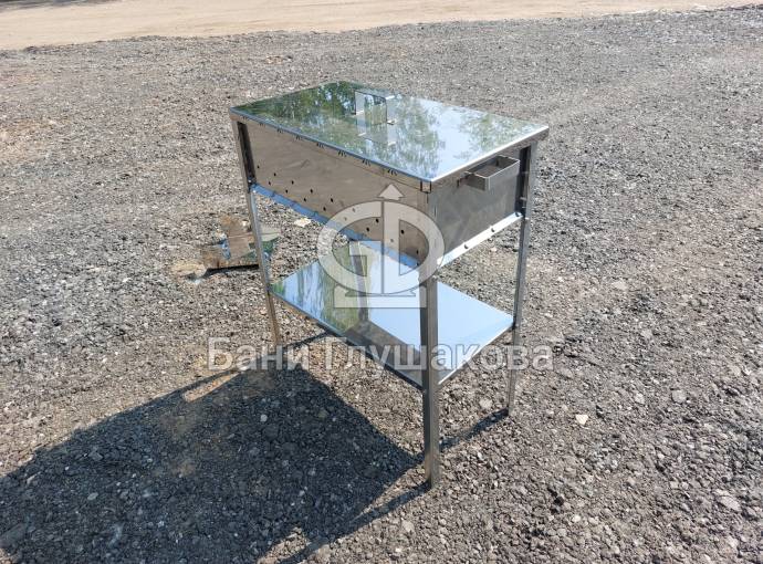 Мангал из нержавейки 600х300х150 на ножках с полкой
