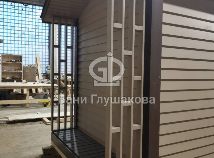 Опция пристройки дровяника доступна только для бань линейки «Буханочка». Длина составляет 50 см.