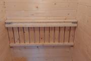 Востребованное решение для маленьких помещений — откидная скамеечка на шпингалетах.