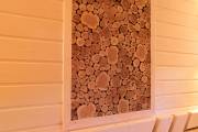 Такое панно можно дополнительно заказать для парной при оформлении договора на строительство бани. Изготавливается из натурального можжевельника, обладает очень приятным насыщенным ароматом.