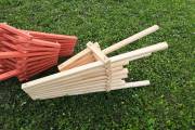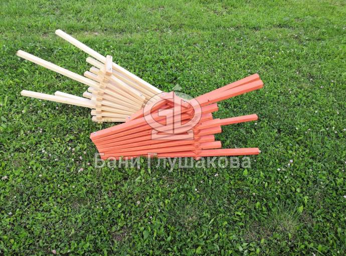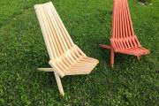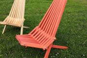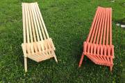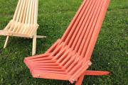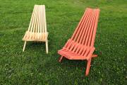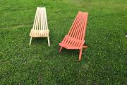 Предлагаем к продаже недорогие деревянные складные шезлонги для дачи. Очень удобные и надежные, с простым складным механизмом. Материал — бруски из ели или кедра. Сиденье, спинка, ножки хорошо отполированы, нет ни зацепок, ни щепок. Можно заказать шезлонг с покраской бесцветным лаком или краской из палитры «Биотекс» (есть цвета «Клен», «Орех»,«Дуб»,«Палисандр»,«Орегон»,«Рябина» и другие — от очень светлых до практически черного).