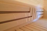 Помимо эстетики, такая спинка несёт в себе и защитную функцию — не даст стене запачкаться (а ведь в сауне жара, соль, пот и вот это всё).