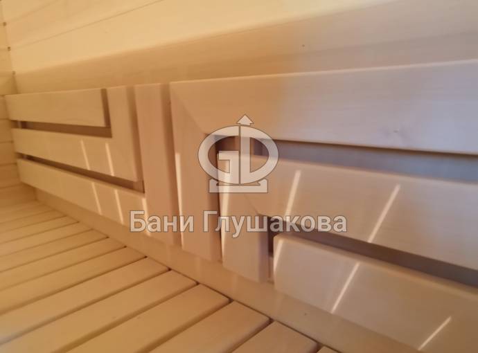 Еще одна дополнительная услуга, чтобы сделать вашу парную еще краше и приятнее — декоративная спинка для полога с интересным узором. Можно сделать своими руками, но зачем, если можно заказать у нас?