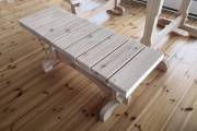 Комплект на фото из стола и двух скамеек — еще один вариант банной мебели ручной работы от Дмитрия Глушакова. Добротная, собранная из толстых досок массива, мебель очень органично вписывается в интерьер наших бань.