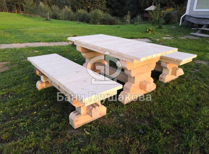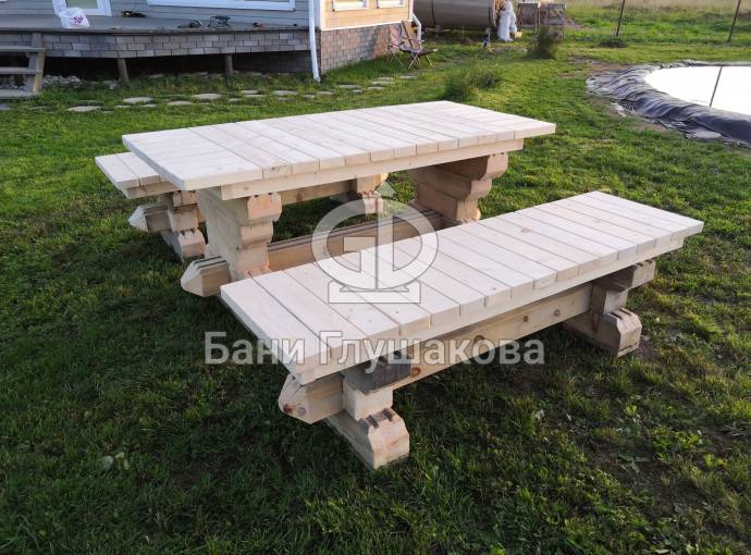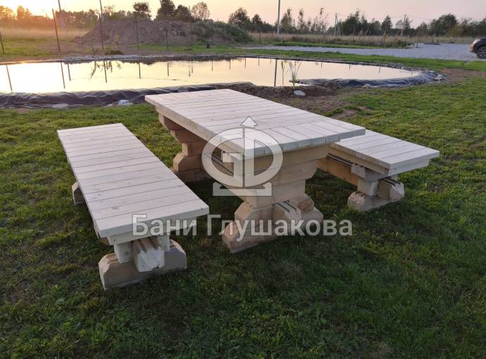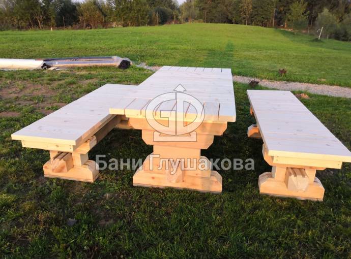 Если вам понравились добротный стол и коренастые скамеечки, а желания сделать такие своими руками нет, то закажите у нас — любой материал, любые размеры. Доставка транспортной компанией. Цена договорная → perevoznyebani@yandex.ru.