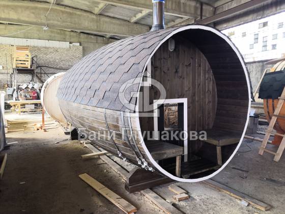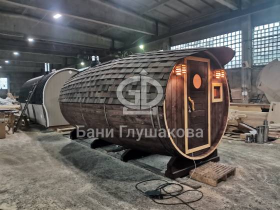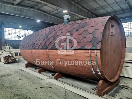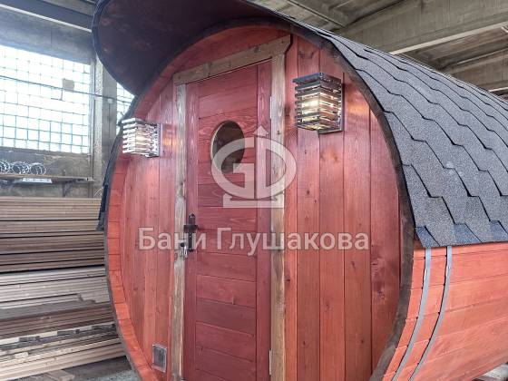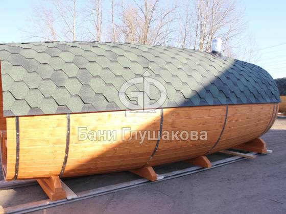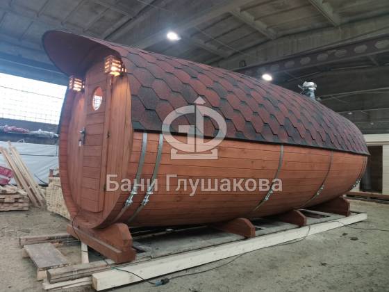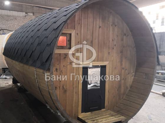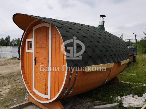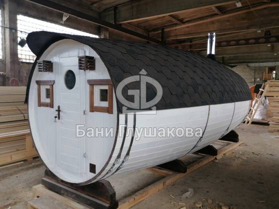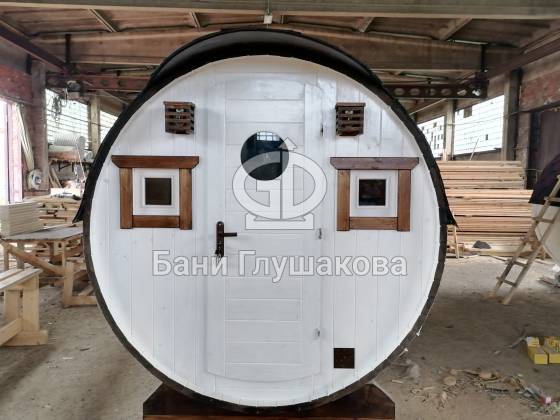 Настоящая баня бочка — это высшая точка развития круглых бань. Модель родилась из несовершенств классической бани в виде бочки. Дерево — материал живой, и он как ни один другой умеет менять уровень своей влажности. То есть по весне бани набирали влагу, а летом активно отдавали ее — появлялись щели, и приходилось постоянно подкручивать регулировочные кольца.