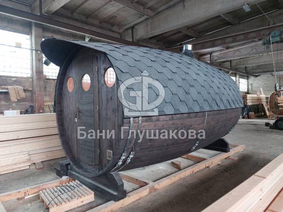Изготовление такой бани — довольно сложный и трудоемкий процесс, поэтому цена на нее несколько выше, чем на классическую круглую модель. Однако, гарантируем — оно того стоит.