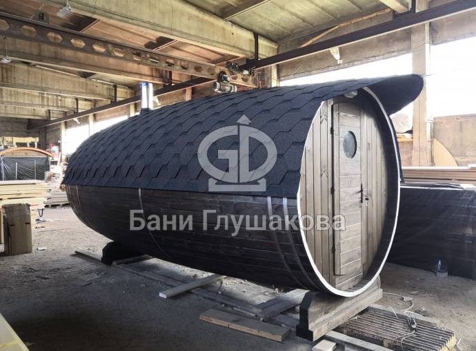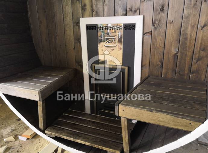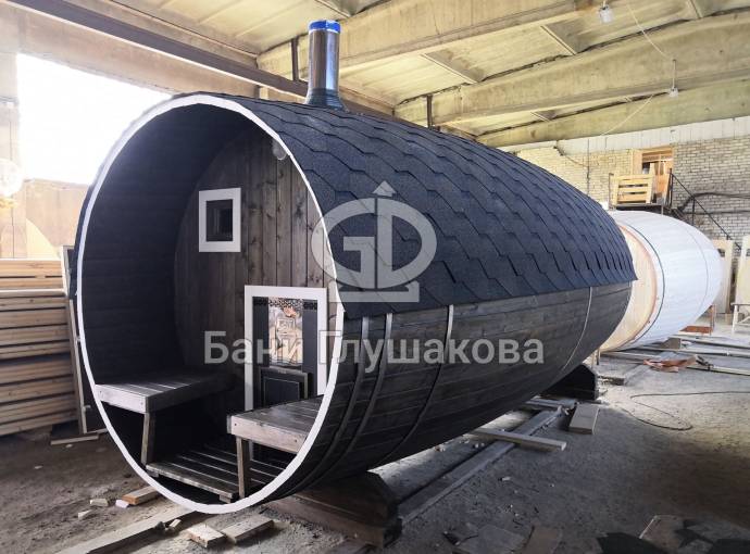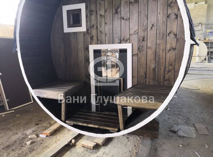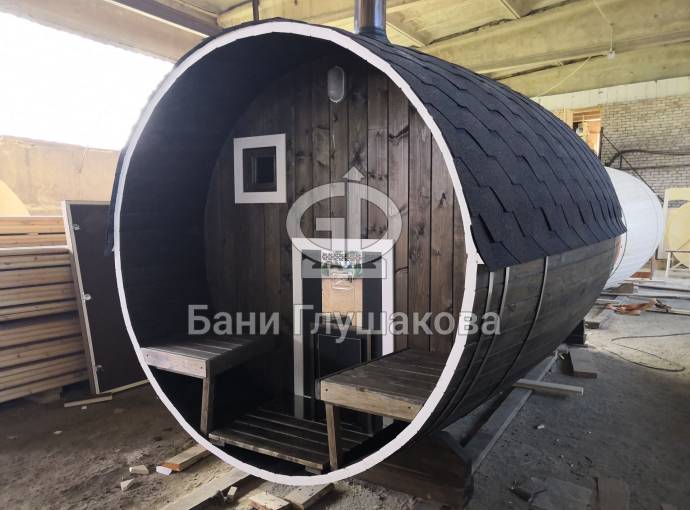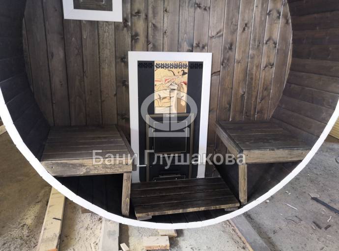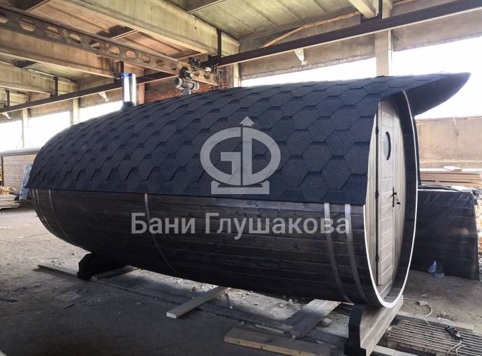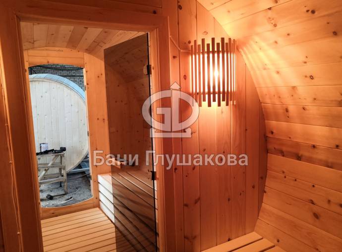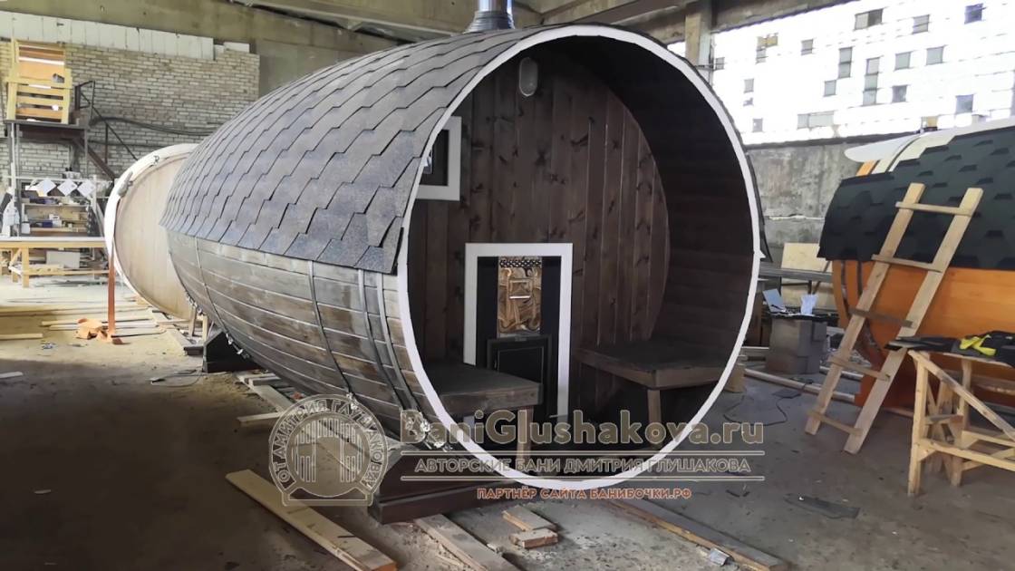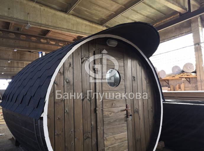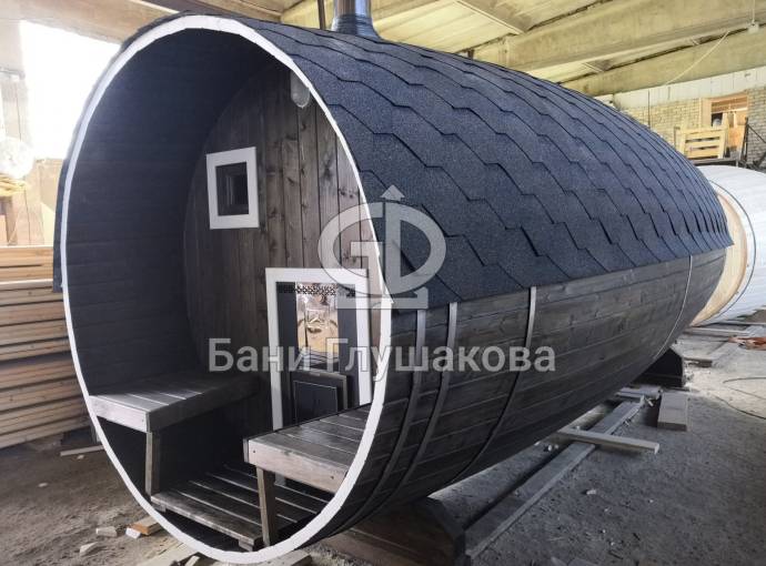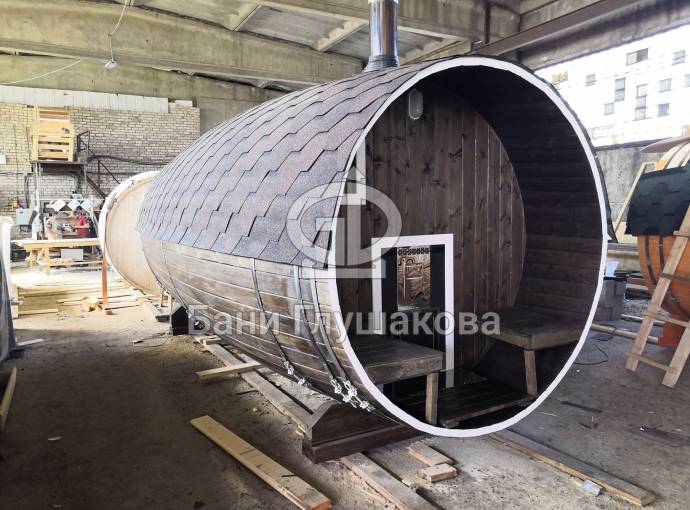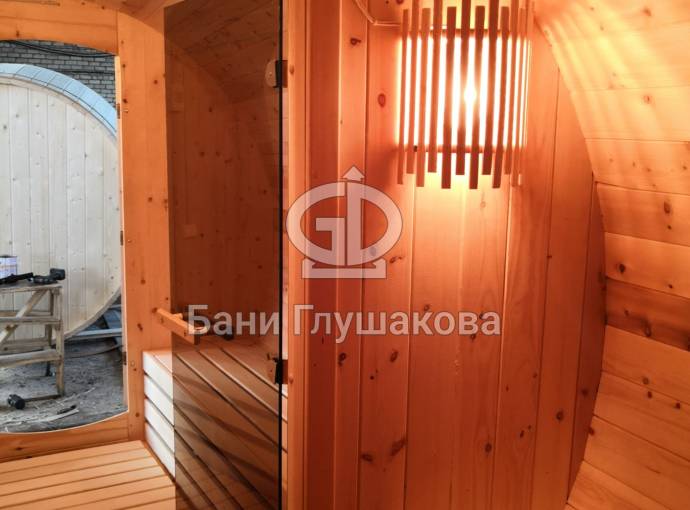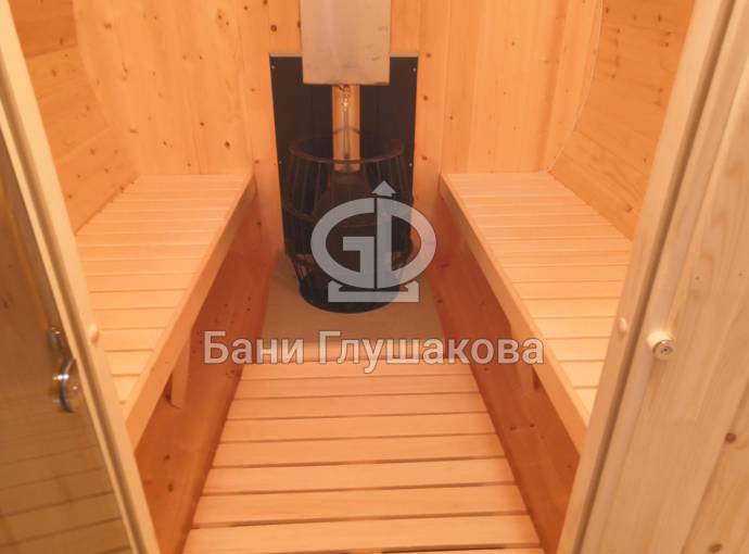Эта баня была сделана и продана, она выставлена как пример возможного варианта исполнения.
