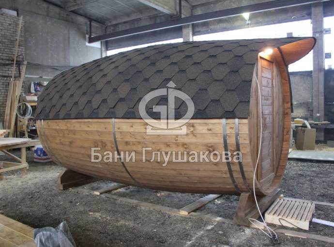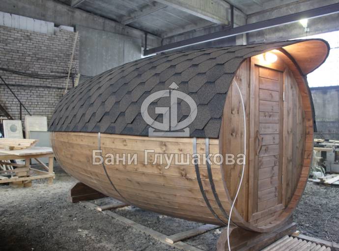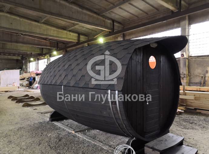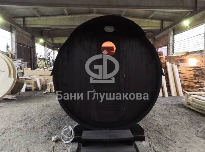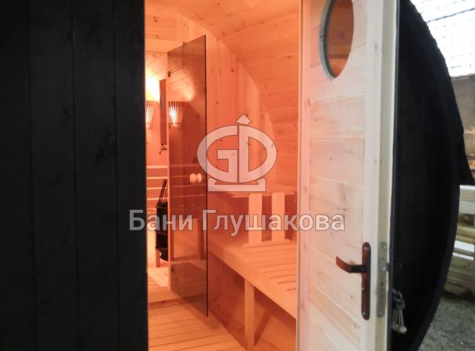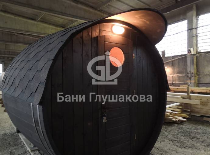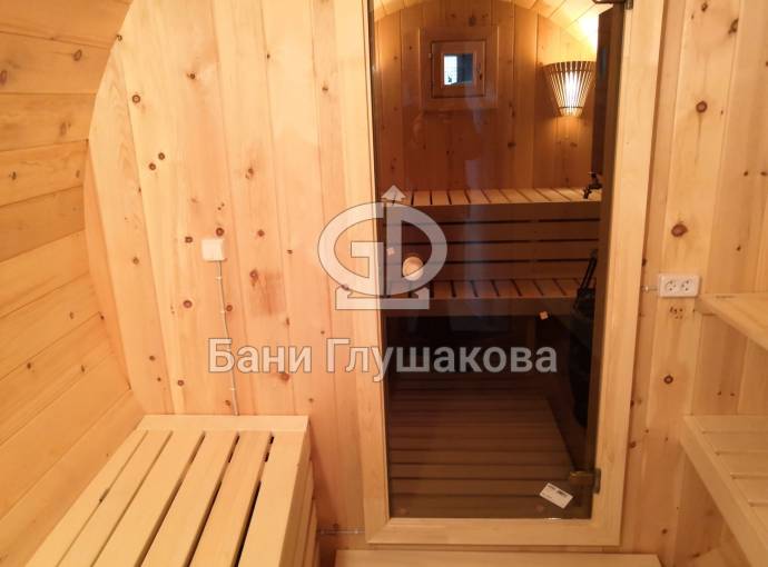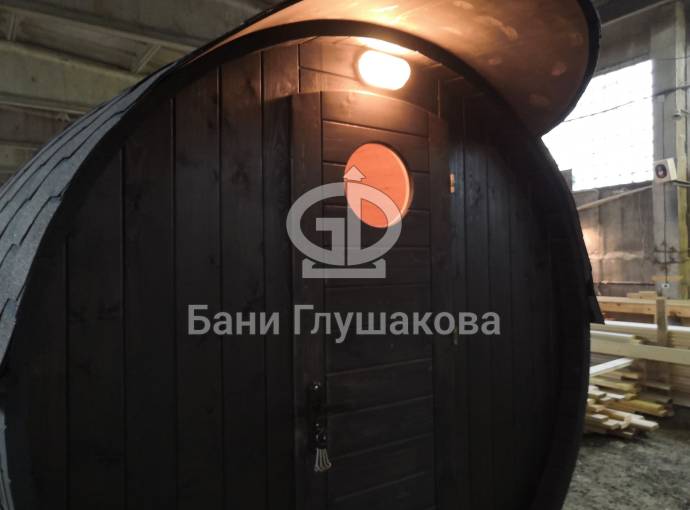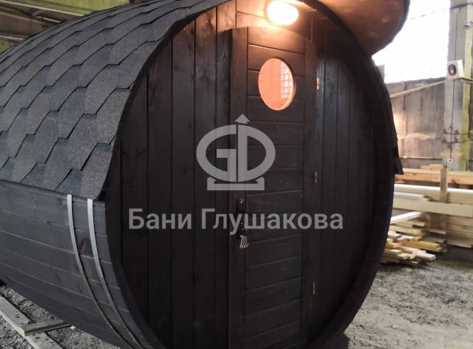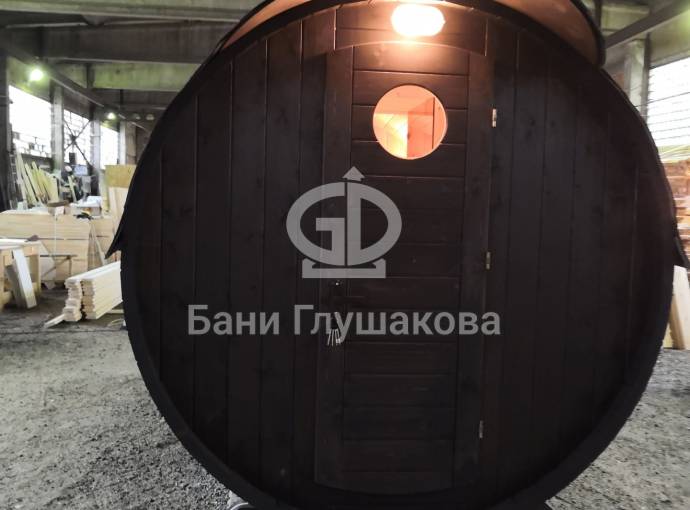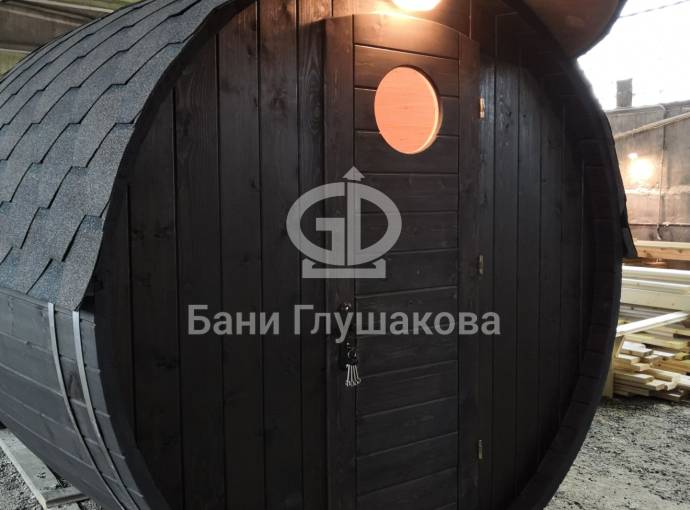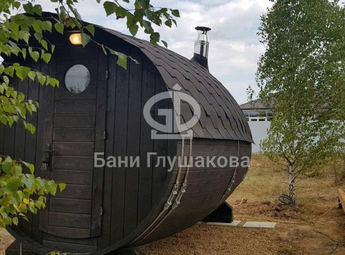 Проект бани в виде настоящей бочки «Ступино» 4м