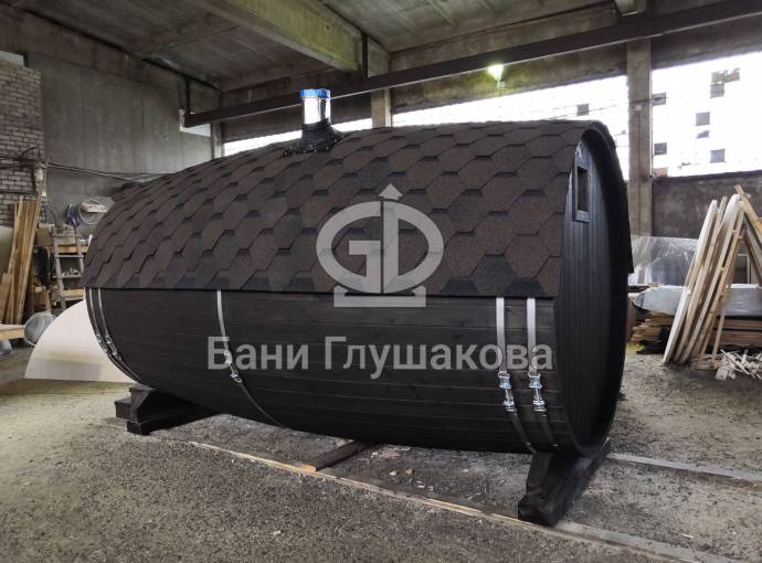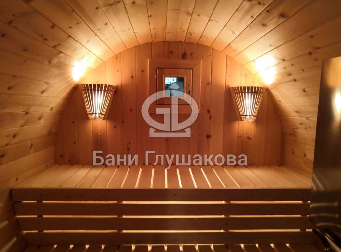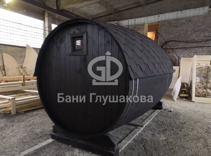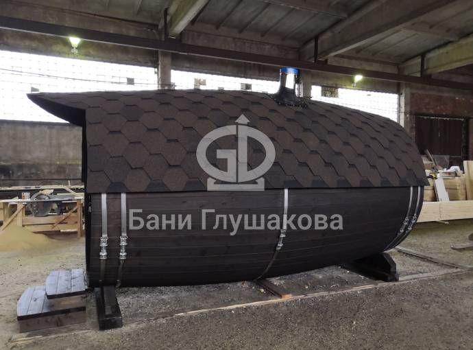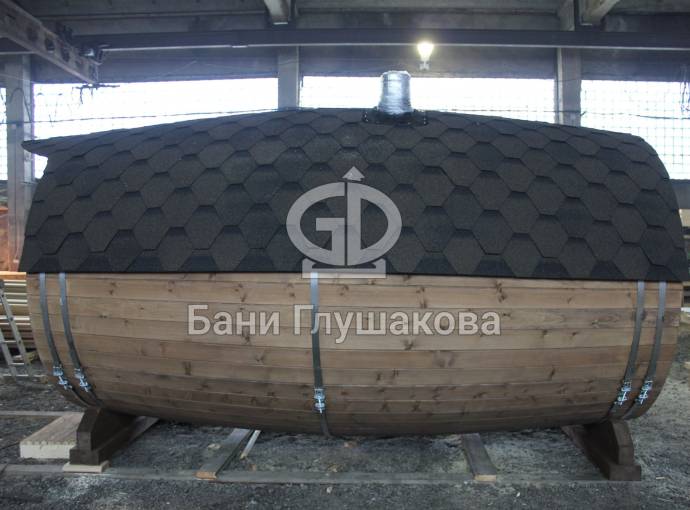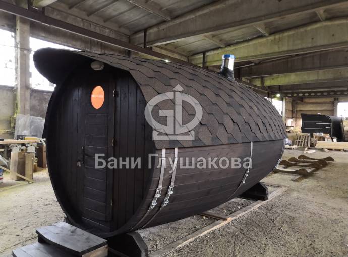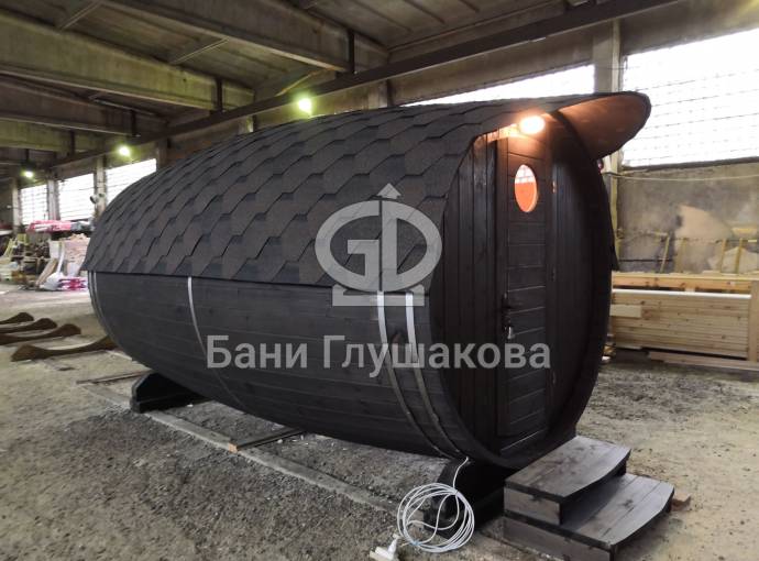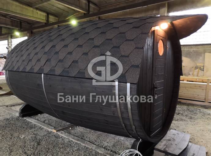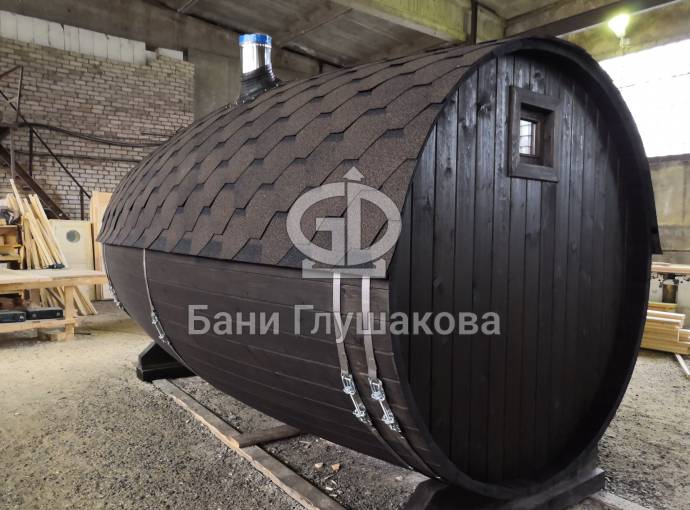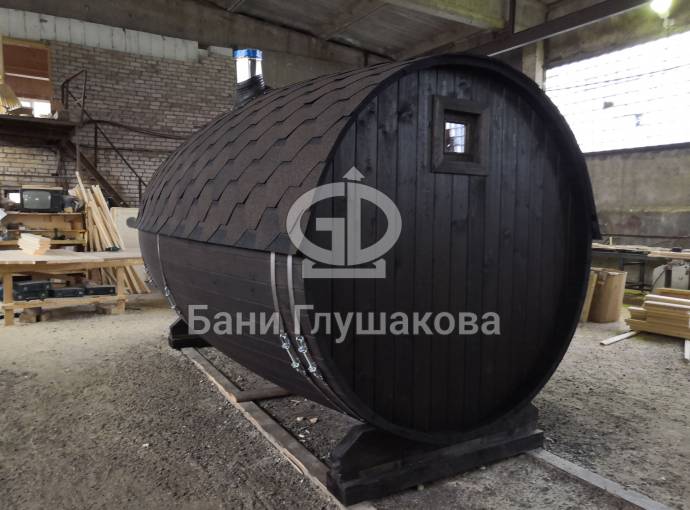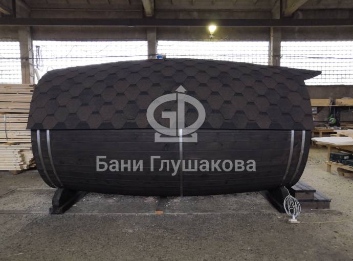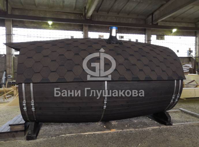 Проект бани в виде настоящей бочки «Ступино» 4м