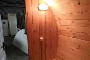 Можно установить один или более светильник у входной двери бани бочки снаружи, подробнее по ссылке, в комплект входит покраска его в цвет окантовки бани, подключение на отдельный выключатель, светодиодная лампа. Стоимость 1700 рублей за штуку
