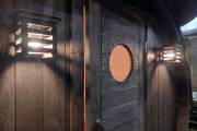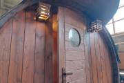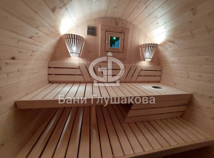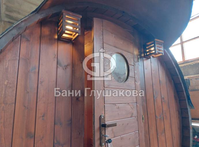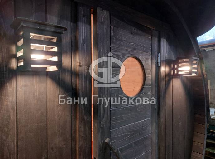 Можно установить один или более светильник у входной двери бани бочки снаружи, подробнее по ссылке, в комплект входит покраска его в цвет окантовки бани, подключение на отдельный выключатель, светодиодная лампа. Стоимость 1700 рублей за штуку