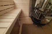 Можно установить насосную станцию, бойлер, бак, душ, устанавливается как в душевой комнате так и в маленькой бане, но уже слева или с права в комнате отдыха, а душ выводится в этом случае в парную.