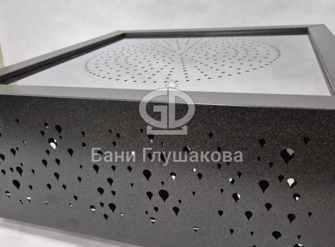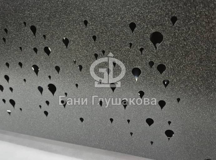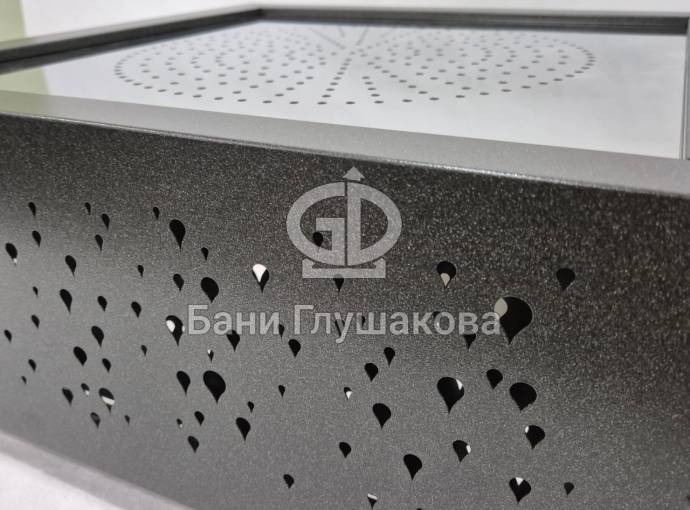 Изготовлено из нержавеющей стали AISI 304. Оправа в графитовом цвете с рисунком «Капли».