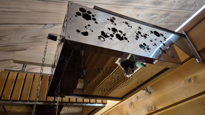 Изготовлено из нержавеющей стали AISI 304. Металлическая оправа с дизайном «Шестгранники».