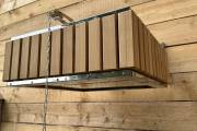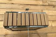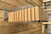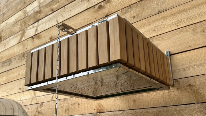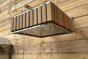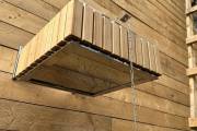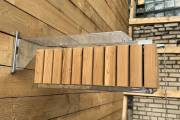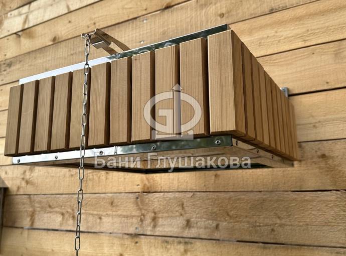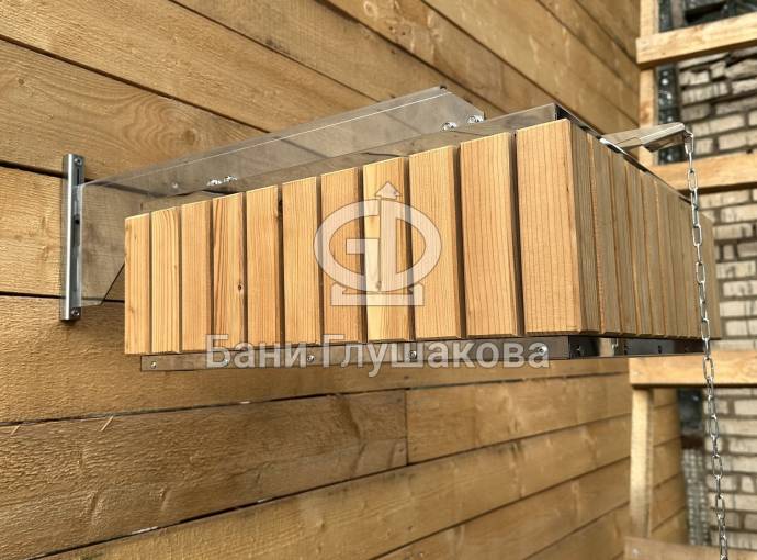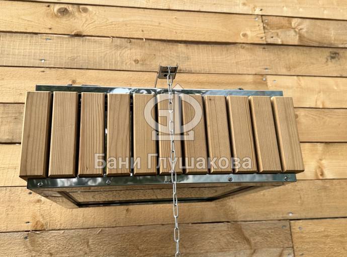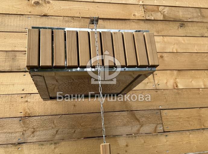 Изготовлено из нержавеющей стали AISI 304 бессварным способом. Нет швов – нет ржавчины. Конструкция максимально надёжна. Оправа сделана из термомодифицированного дерева – она не потемнеет, не будет гнить или плесневеть. Досочки расположены вертикально.