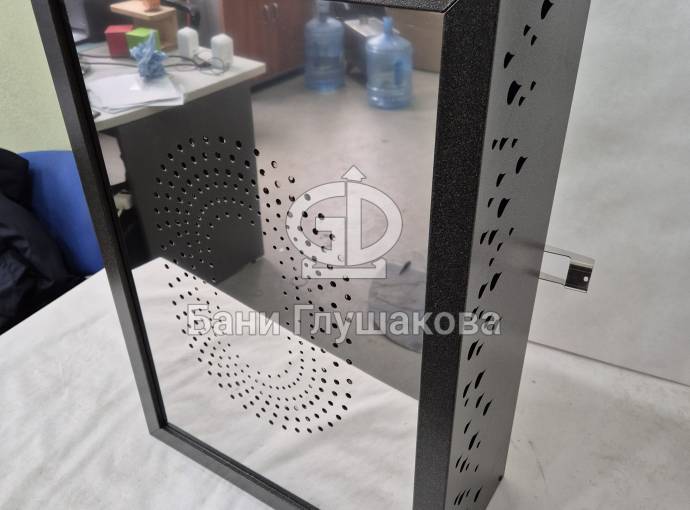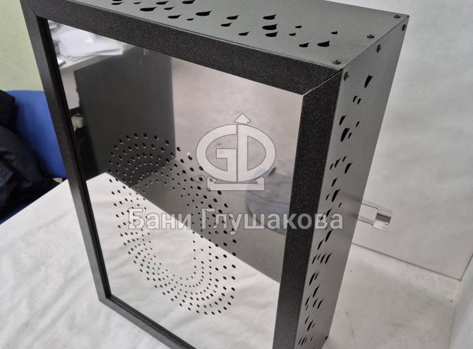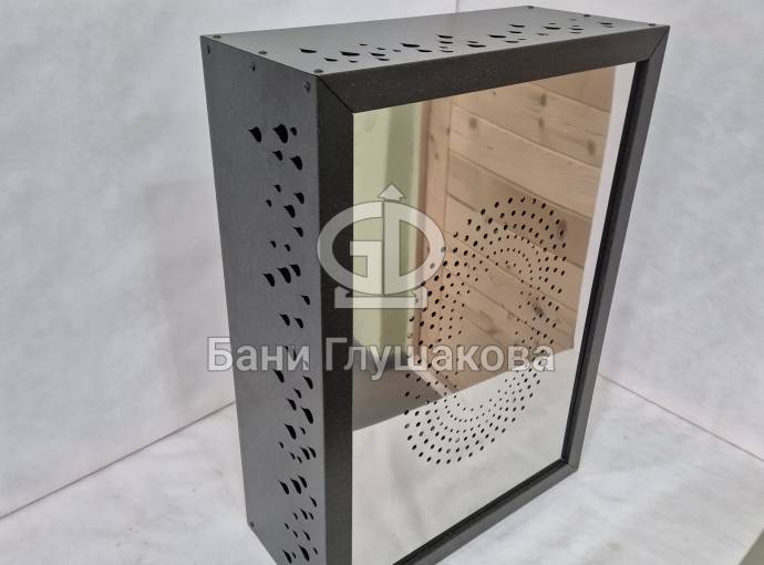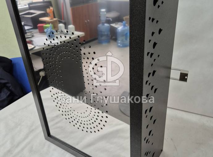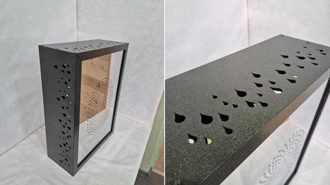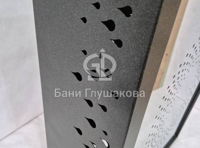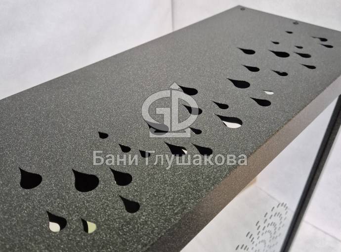 Отделка выполнена из нержавеющей стали с рисунком «Капли». Покрашено порошковой краской в цвет ГРАФИТ.