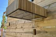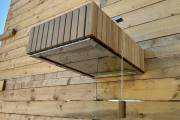 Изготовлено из нержавеющей стали AISI 304 бессварным способом. Нет швов – нет ржавчины. Конструкция максимально надёжна. Оправа сделана из термомодифицированного дерева – она не потемнеет, не будет гнить или плесневеть. Досочки расположены вертикально.