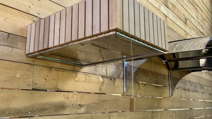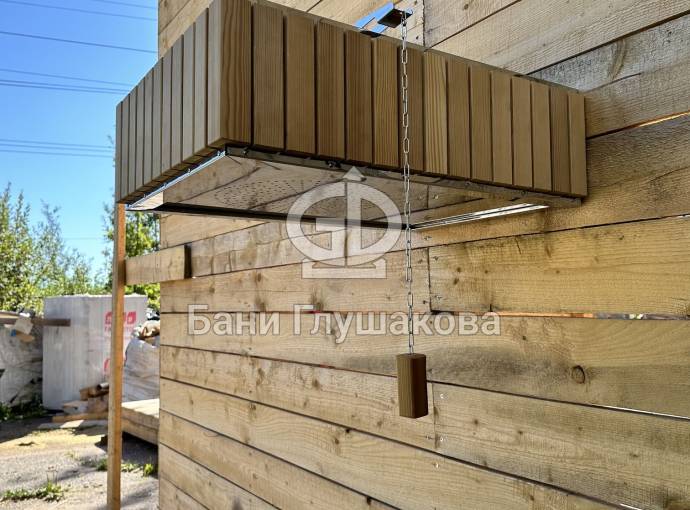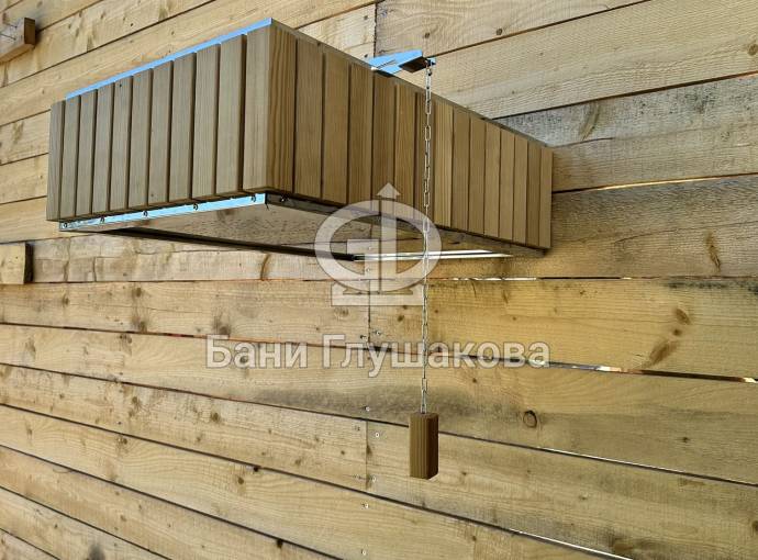 Обливное устройство «Водопад» 40л в оправе из термодоски «Вертикаль»