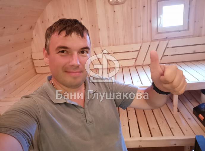 Строили из кедровой бочковой доски. Клиент притязательный и очень тщательно подошёл к выбору комплектации. Так, например, он нанимал отдельного электрика, чтобы сделать электропроводку максимально эстетично и безопасно. К сожалению, своими силами мы этого обеспечить не смогли, так как баня собиралась на выезде, а не в цеху.