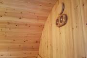 Можно установить один или более светильник у входной двери бани бочки снаружи, подробнее по ссылке, в комплект входит покраска его в цвет окантовки бани, подключение на отдельный выключатель, светодиодная лампа. Стоимость 1700 рублей за штуку