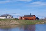 Баня пока не имеет планировки, это был спецзаказ. Это овальная баня бочка увеличенного диаметра 3 метра, длина по основанию составляет 5,6 метров, а с козырьком все 6. Высота при этом 2,4 метра. Размер парной 2,1 м, душевая так же 2,1 м и 2 метра комната отдыха. Баня получилась большая и просторная.