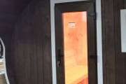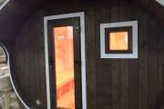 Можно установить один или более светильник у входной двери бани бочки снаружи, подробнее по ссылке, в комплект входит покраска его в цвет окантовки бани, подключение на отдельный выключатель, светодиодная лампа. Стоимость 1700 рублей за штуку