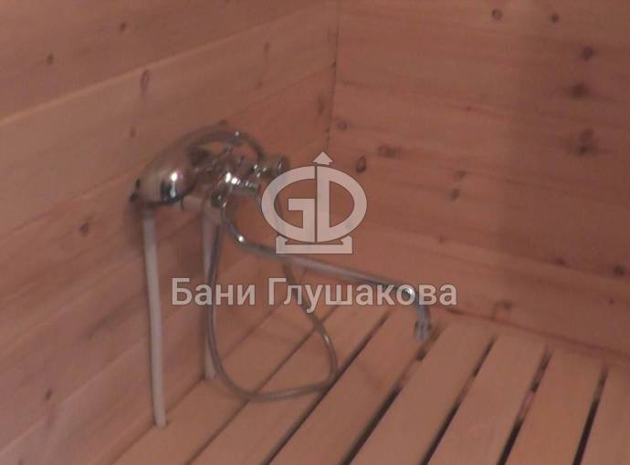 Можно установить насосную станцию, бойлер, бак, душ, устанавливается как в душевой комнате так и в маленькой бане, но уже слева или с права в комнате отдыха, а душ выводится в этом случае в парную.