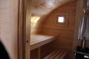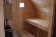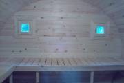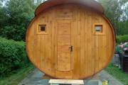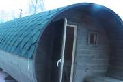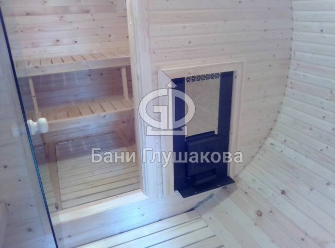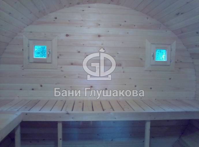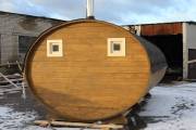 МЕГА баня бочка имеет нестандартную овальную форму. На фото видно, что она имеет увеличенный диаметр. Это напрямую отражается на комфортабельности внутренних помещений.