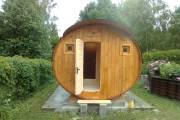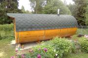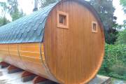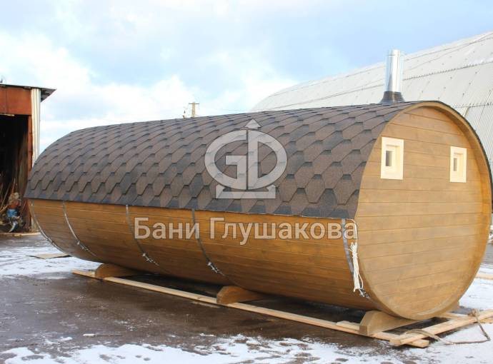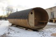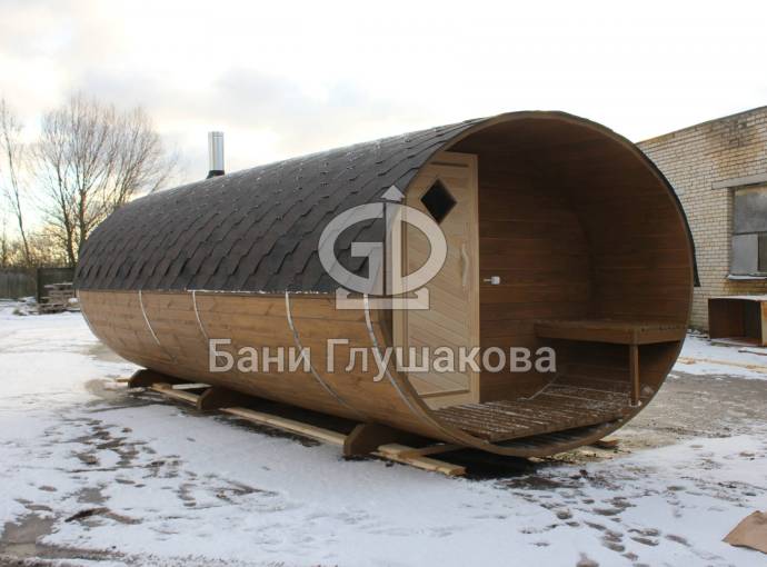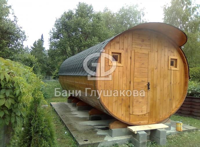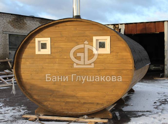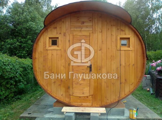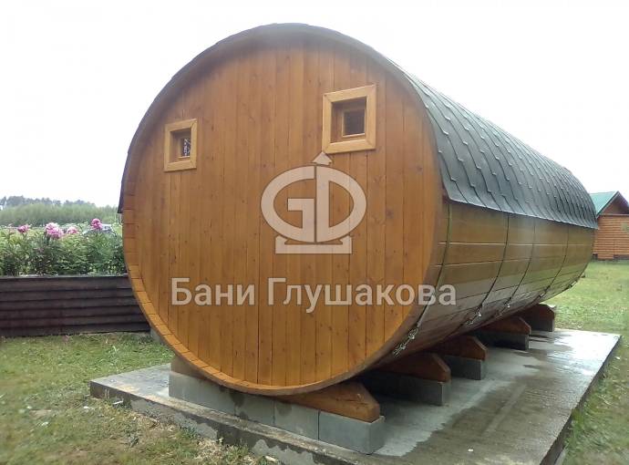 Баня бочка МЕГА — это самая большая баня в виде бочки овальной формы во всем нашем каталоге. Еще больше, еще комфортнее, еще вместительнее! Это не перевозной вариант. Сборка на участке — габариты не позволяют втиснуть баню в грузовик.