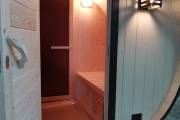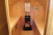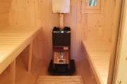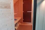 Внутри два отделения: предбанник и парная. Всё полностью готово к использованию. Разве что нужно будет по желанию покрыть внутренние помещения лаком. Мы этого не делаем по умолчанию, потому что некоторые клиенты не хотят обработку парной.