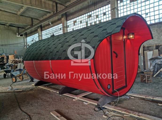 Овальная баня бочка 4м КРАСНАЯ на продажу