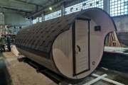 Не хотите долго ждать строительства? Есть вариант — покупайте готовую баню бочку прямо с выставки. Тем более она ох как хороша.
