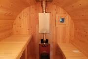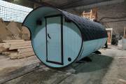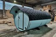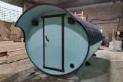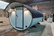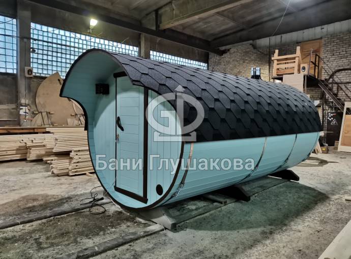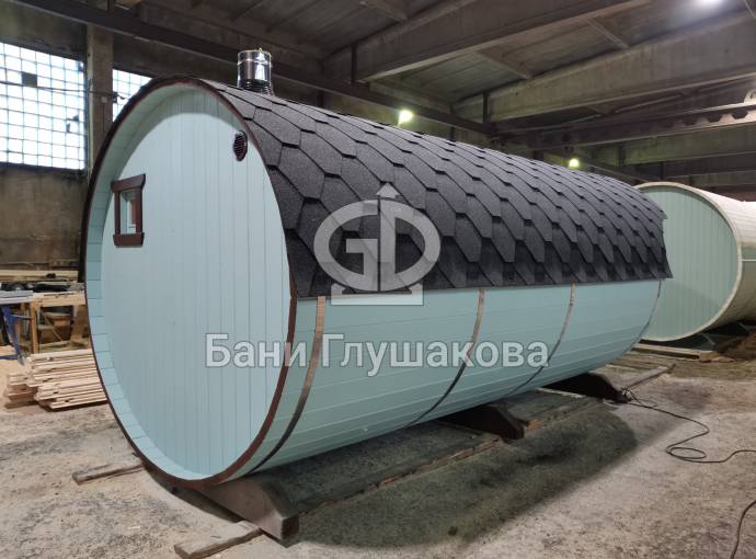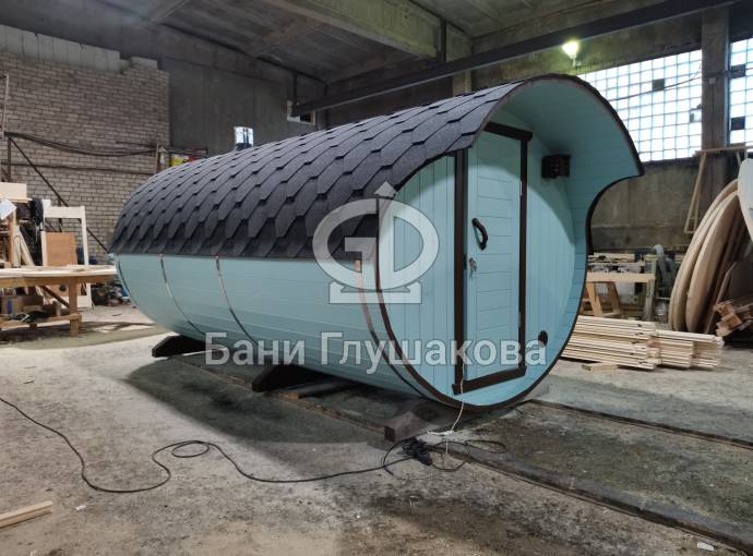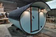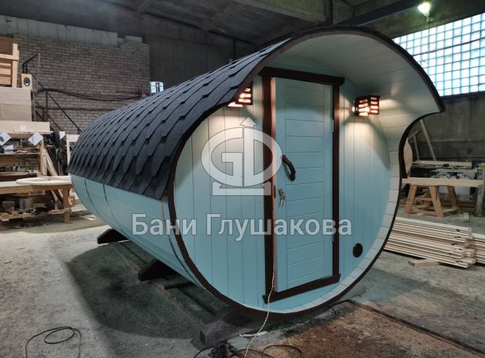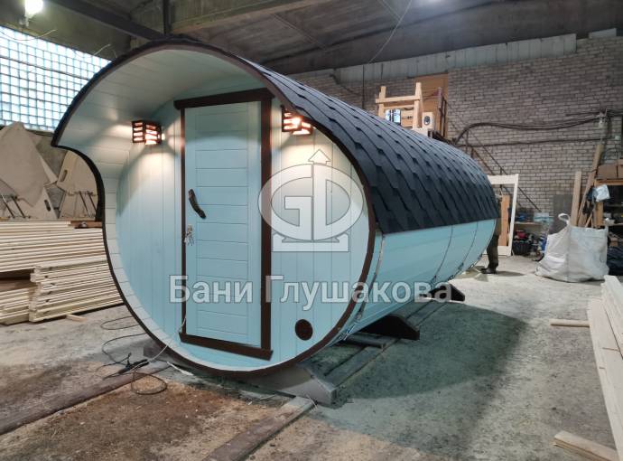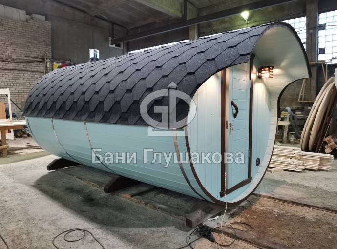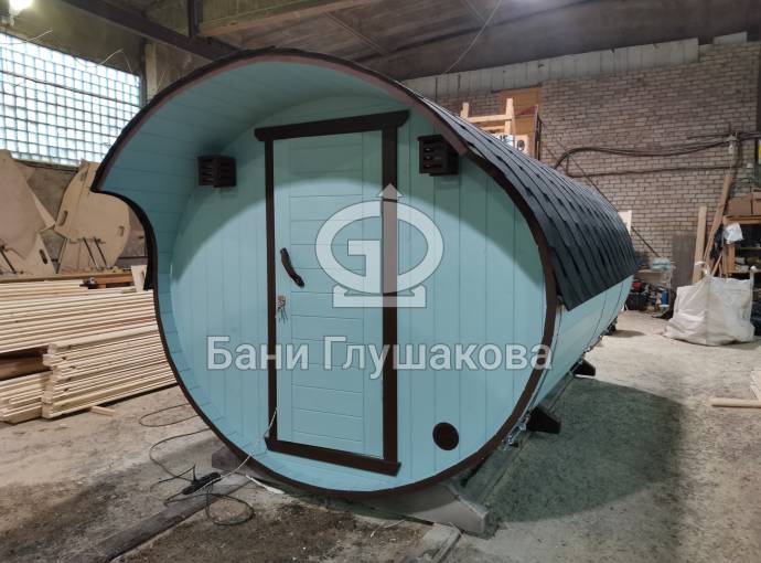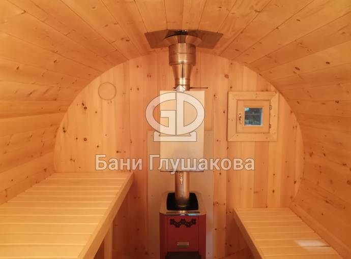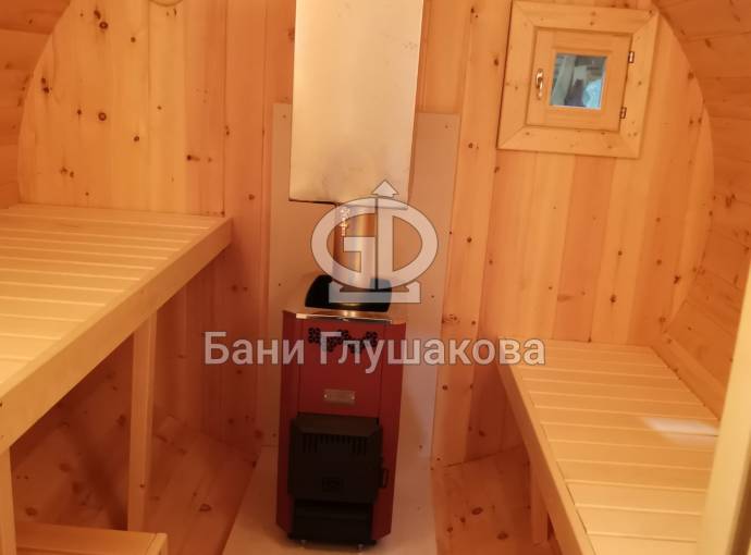 В конце января 2021 года мы собрали овальную баню бочку из кедровой бочковой доски в отличной комплектации под ключ.