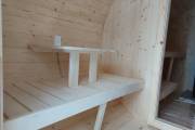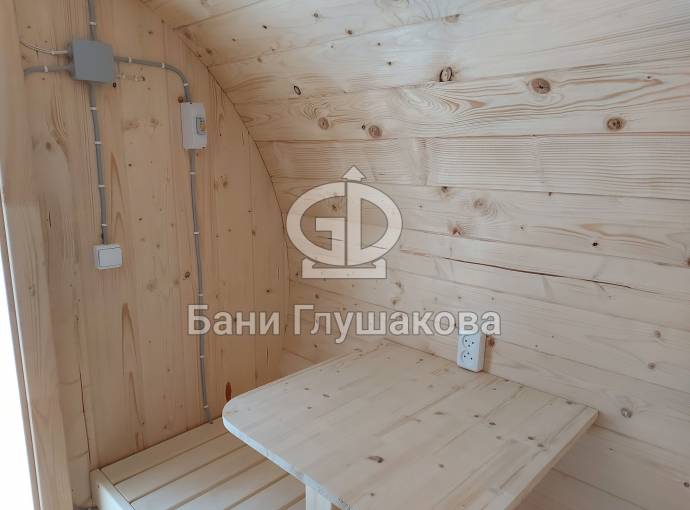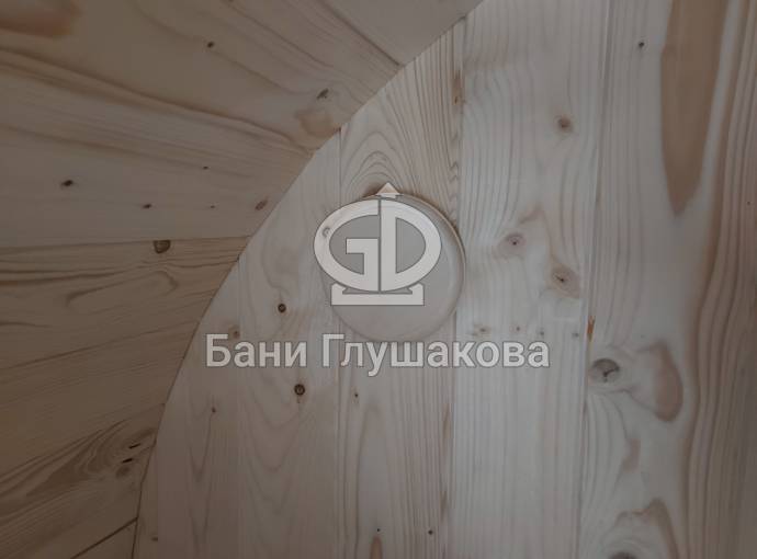 Это классическая овалбочка с увеличенной до 2,4 м шириной. Благодаря этим лишним 30 см в сечении баня комфортнее, чем обычная круглая бочка. Собрана из бочковой доски хвойных пород (ель/сосна).