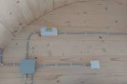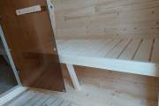 Внутри 2 отделения: комната отдыха и парная. Отделения разделены стеклянной дверью с магнитным замком. На входе со стороны улицы и в парной сделано симпатичное освещение с деревянными светильниками. Поставлена отличная мощная печь фирмы Теплодар — будет отличный стойкий пар, печь проверена на собственном опыте.