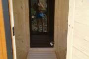 Делается бесплатно во всех баня без террасы, так как мы отвечаем за все элементы бани и не хотим чтобы входная дверь пришла в негодность из за отсутствия навеса.