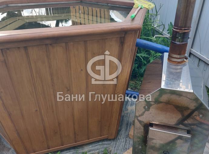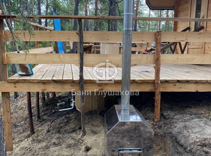 Внешняя печь для купели имеет преимущества перед погружной: не занимает места в бочке и топить ее удобнее. Внешняя печка «ГиД 3» имеет красивую форму и используется нами для комплектации купелей.