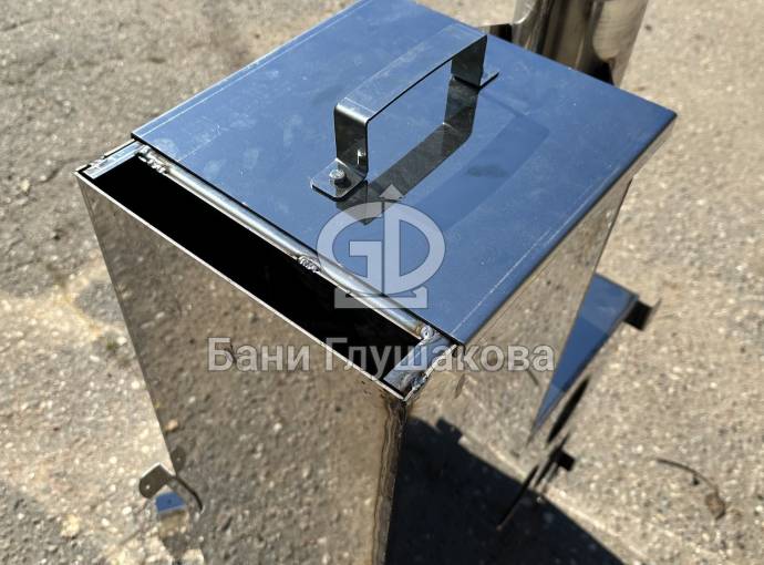 Вертикальная загрузка дров очень удобна: топка с удобной ручкой располагается над водой.