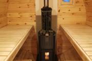 • Классический пар или «русская баня» — открытая каменка вмещает 60 кг камней, что быстро создаёт нужный микроклимат;