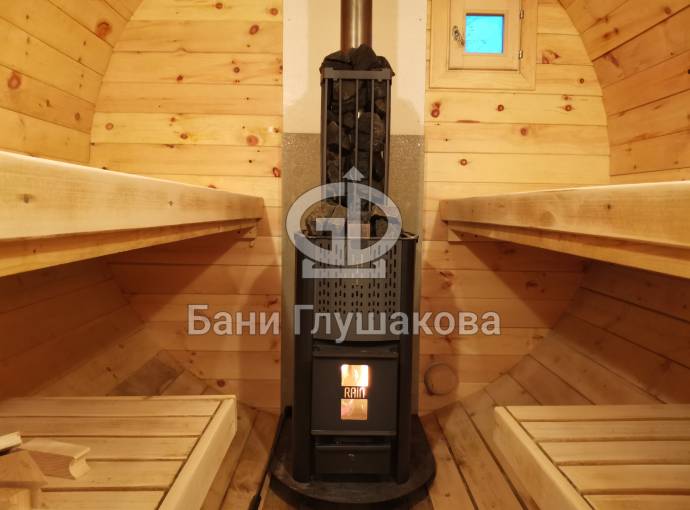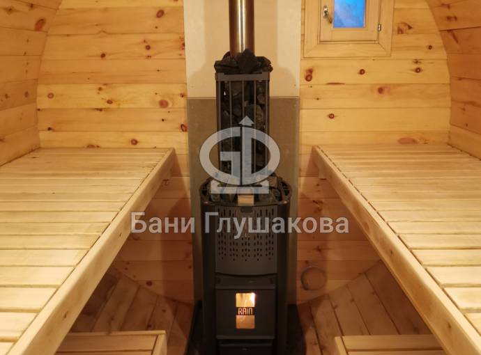 Теперь для заказа доступна печь, созданная специально для бань бочек, производителя «Костёр» с укороченной топкой. Довольно тяжелая, добротная, сделана из 4 мм стали, корпус усилен рёбрами жёсткости — это большой плюс. Современные печи типа «Теплодара» с тонкими 2 мм стенками страдают деформациями. С «Костёр Rain» этого случиться не должно.