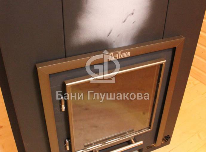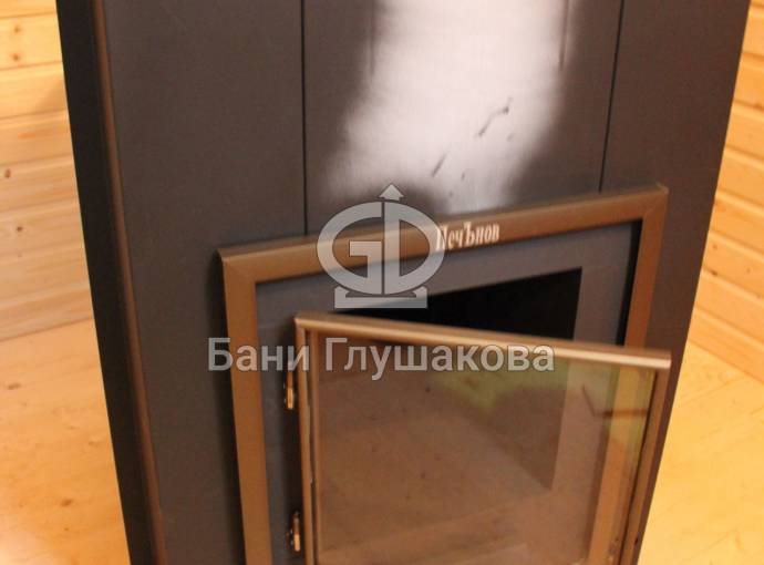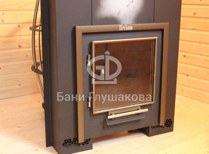 Отопительная печь «Панорама» оснащена выносной топкой. Это идеальная конструкция для небольших бань — каменка устанавливается в парилке, а топка выводится в более просторное помещение предбанника или комнаты отдыха. В некоторых случаях можно вывести топку на улицу: еще удобнее топить, еще меньше грязи в бане.